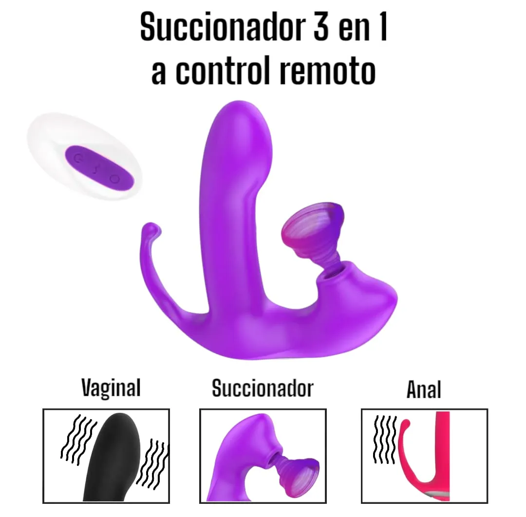 Vibrador Succionador Y Estimulador Anal 3 En 1 A Control Remoto